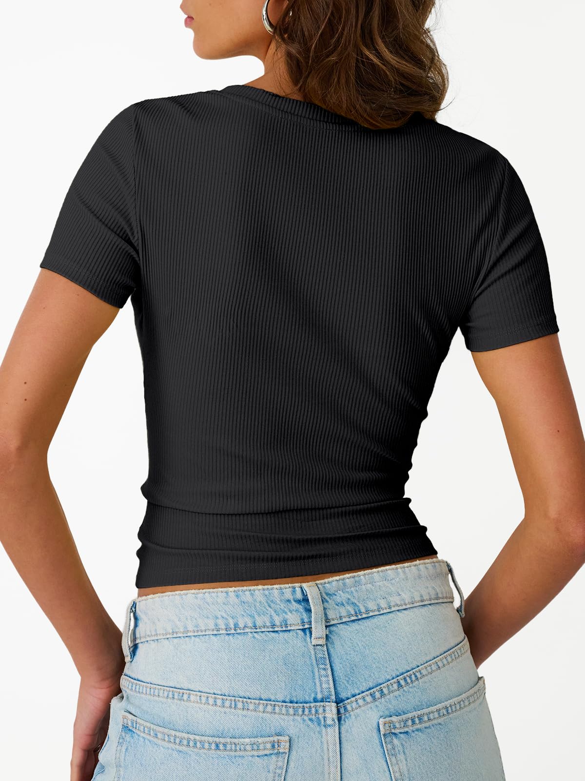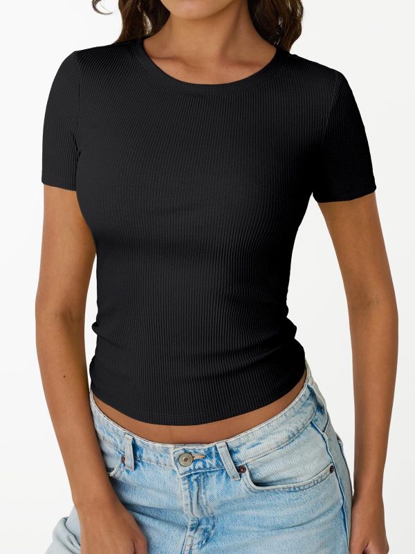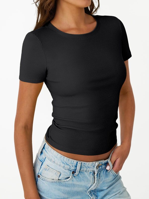 Features: Women’s short-sleeved summer top, ribbed knit, round neck, short sleeves, slim version. Suitable for daily leisure, street, home, school, office, street, beach, party, nightclub, shopping, dating, vacation, etc.